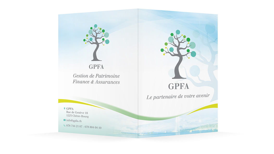 Création d'un dépliant pour l'entreprise GPFA, gestion de patrimoine et assurances.
