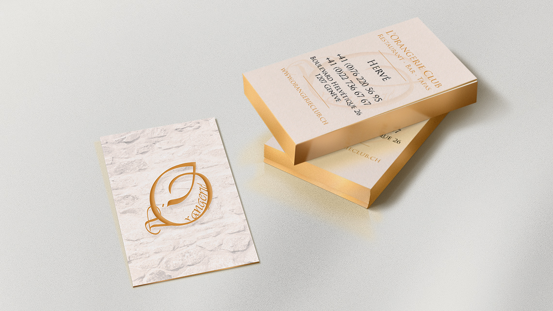 Création de la carte de visite pour le club restaurant L'Orangerie à Genève.